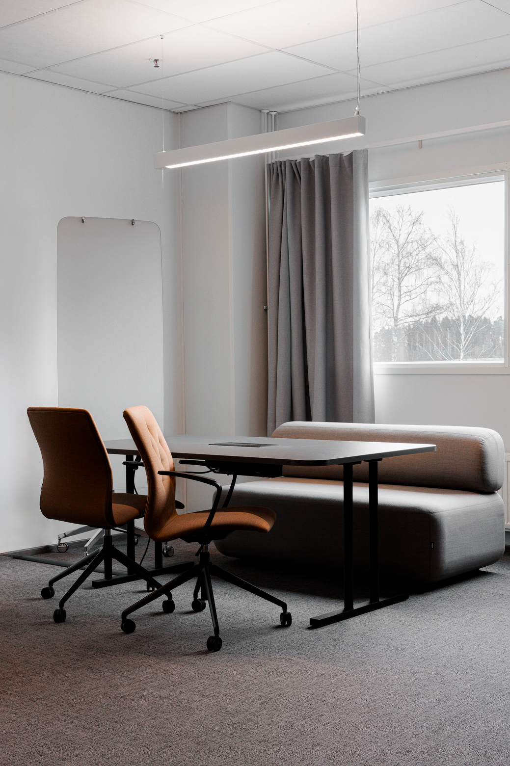 OffiStoren toimittamat VM-Carpet Oy:n matot sekä Eurokangas Oy:n verhot.