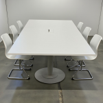 Kuntoluokka Hyvä – tämä tuote on käytetty, mutta se on edelleen täysin toimiva ja näyttää hyvältä. Neuvottelupöydässä on ainutlaatuinen sähköluukku, joka mahdollistaa helposti johdotuksen ja sähkön käytön tapaamisissa, pitäen tilan siistinä ja esteettömänä.